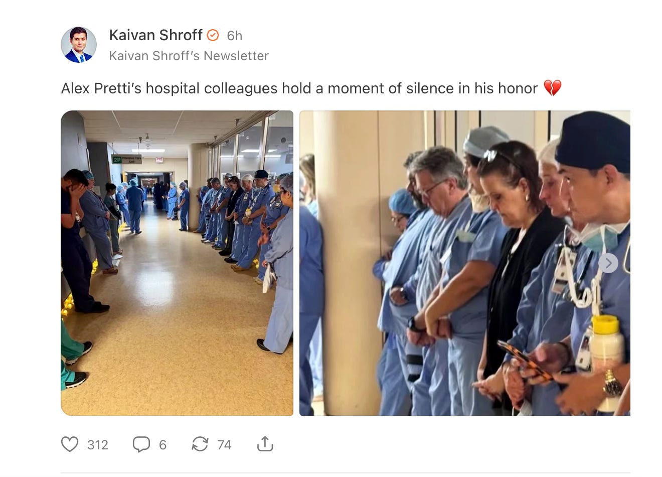 I can’t begin to count how much we all lost when we watched the videos of the president’s paid assassins gunning Alex Pretti down in the street in Minneapolis. Apart from the loss of a beloved precious person, a healer, a neighbor, and a loving son...apart from the violent extinguishing of a life well lived and full of continued promise, a man already saintly for so many lives saved...apart from the world’s loss of a man who daily waded into trauma to save veterans’ lives, a kind spirit who loved his dog companion and the outdoors...in addition to and because of all that, we lost all hope that all of this can end soon or end well.